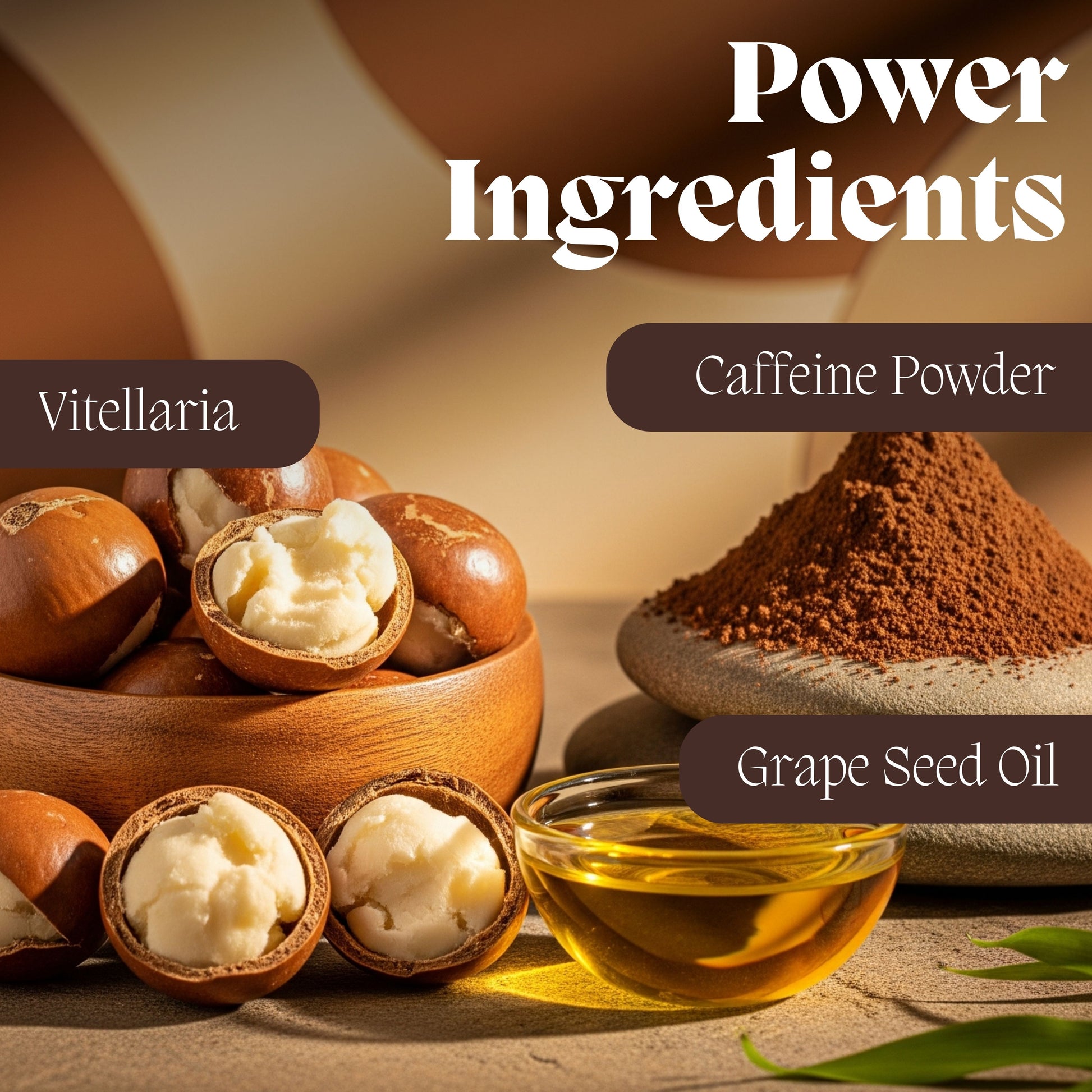 Aqua, Caprylic Capric Triglyceride, Cetearyl Alcohol, Isopropyl Myristate, Glyceryl Mono Stearate Glyceryl Stearate (And) Peg-100 Stearate, Butyrospermum Parkii, Caffeine, Xylitylglucoside (And) Anhydroxylitol (And) Xylitol, Dimethicone, Simmondsia Chinensis (Jojoba) Seed Oil, Phenoxyethanol, Triethylene Glycol, Panthenol, Vitis Vinifera (Grape) Seed Oil, Glycyrrhiza Glabra (Licorice) Root Extract, Calendula Officinalis Flower Extract, Rubia Cordifolia Stem (Manjishtha) Extract, Sodium Gluconate, Mint Solution, Allantoin, Pentylene Glycol (And) Tamarindus Indica Seed Gum, Tocopheryl Acetate, Retinyl Palmitate, Triethanolamine