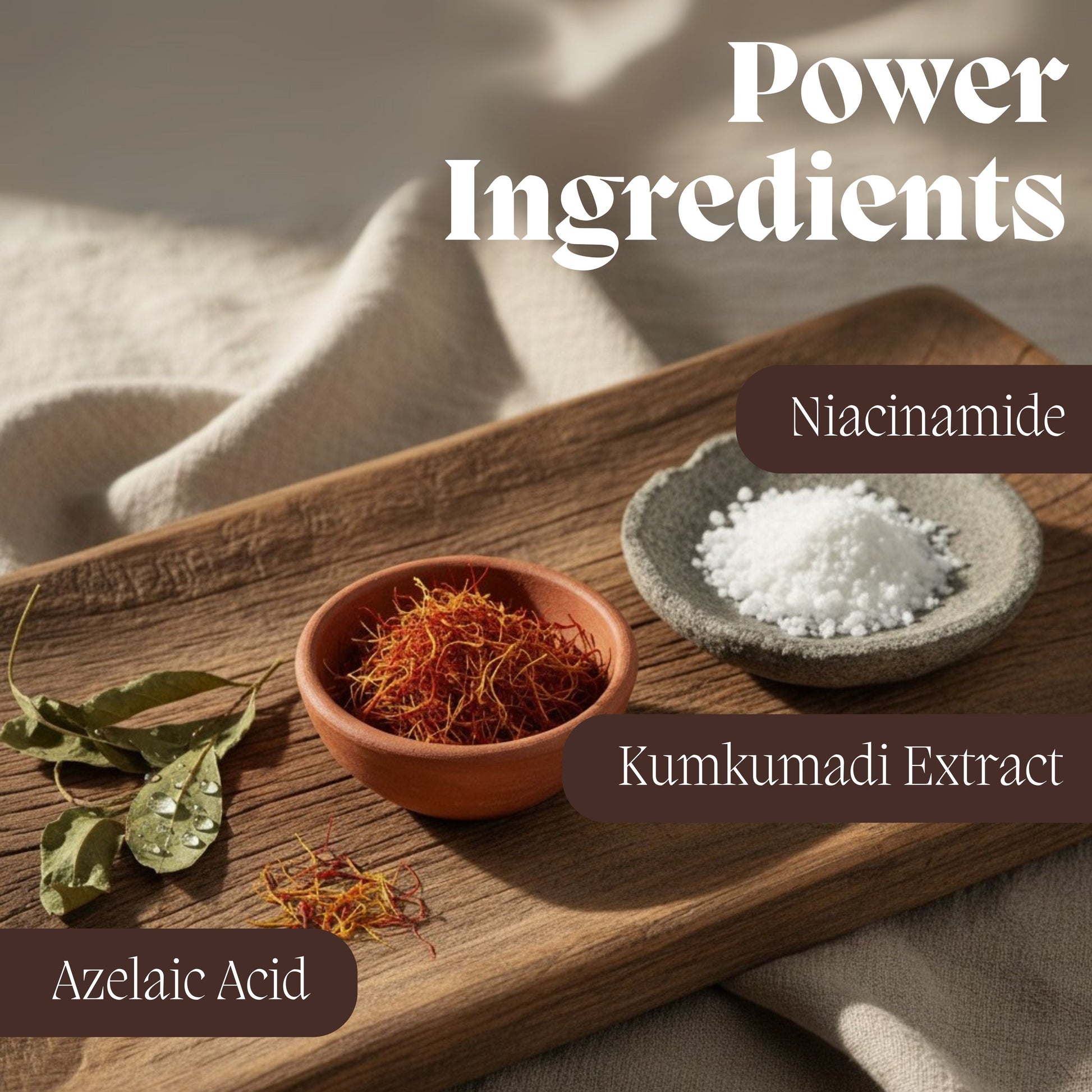 Aqua, Caprylic Capric Triglyceride, Cetearyl Alcohol, Isopropyl Myristate, Glyceryl Mono Stearate Glyceryl Stearate (And) Peg-100 Stearate, Butyrospermum Parkii, Xylitylglucoside (And) Anhydroxylitol (And) Xylitol, Niacinamide, Dimethicone, Simmondsia Chinensis (Jojoba) Seed Oil, Phenoxyethanol, Triethylene Glycol, Panthenol, Vitis Vinifera (Grape) Seed Oil, Crocus Sativus (Saffron) Flower Extract, Glycyrrhiza Glabra (Licorice) Root Extract, Calendula Officinalis Flower Extract, Rubia Cordifolia Stem (Manjishtha) Extract, Kojic Acid, Azelaic Acid, Lecithin, Squalane, Sodium Gluconate, Allantoin, Pentylene Glycol (And) Tamarindus Indica Seed Gum, Tocopheryl Acetate, Retinyl Palmitate, Triethanolamine